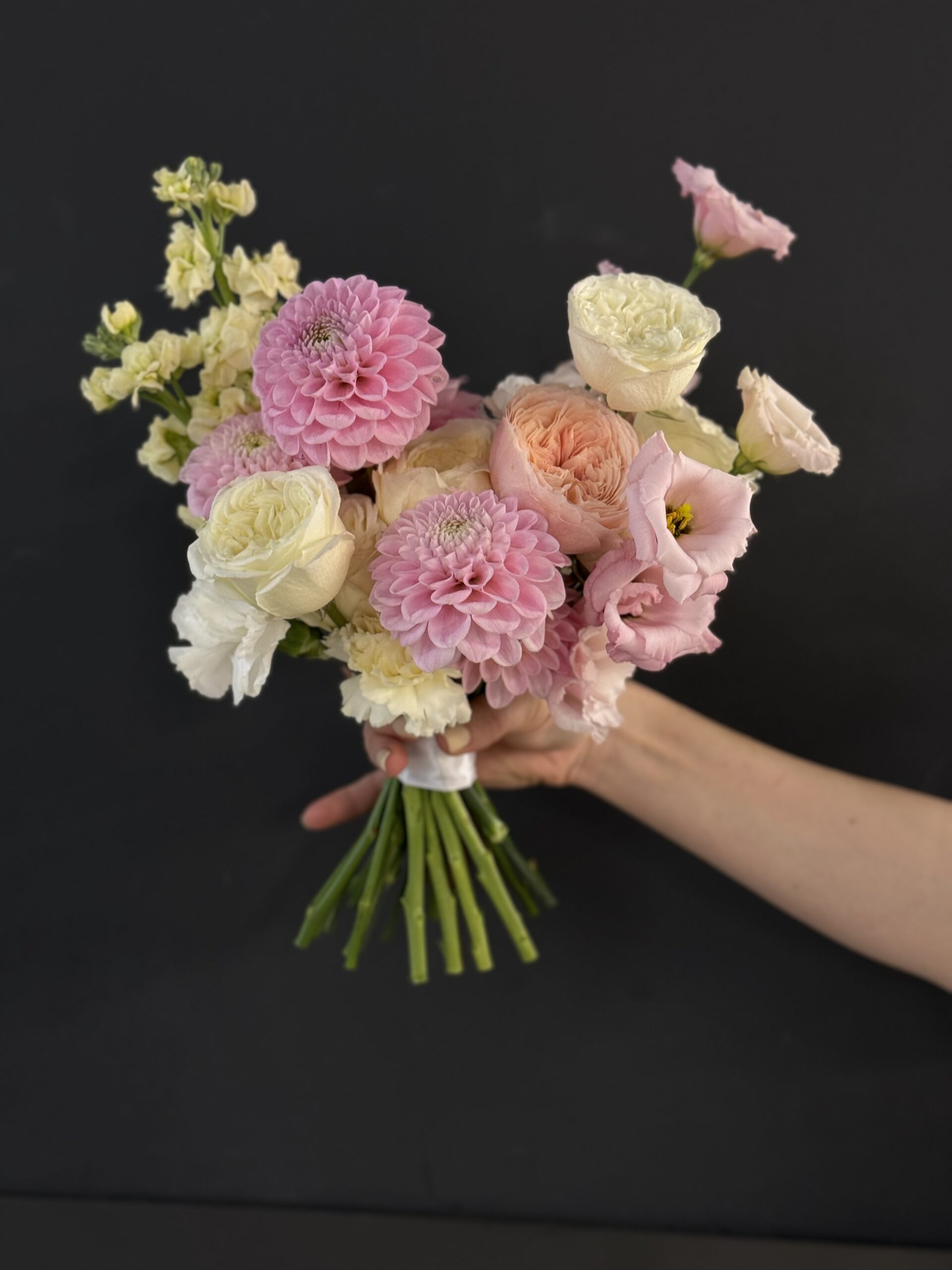 Подходит: Невесте, которая хочет подчеркнуть свою утончённость, но не боится добавить немного креатива в образ. Этот букет будет уместен на свадьбе в стиле «современная классика», «ботанический шик» или «романтический минимализм». Он подойдёт девушке, которая ценит гармонию, но стремится к индивидуальности в деталях.
