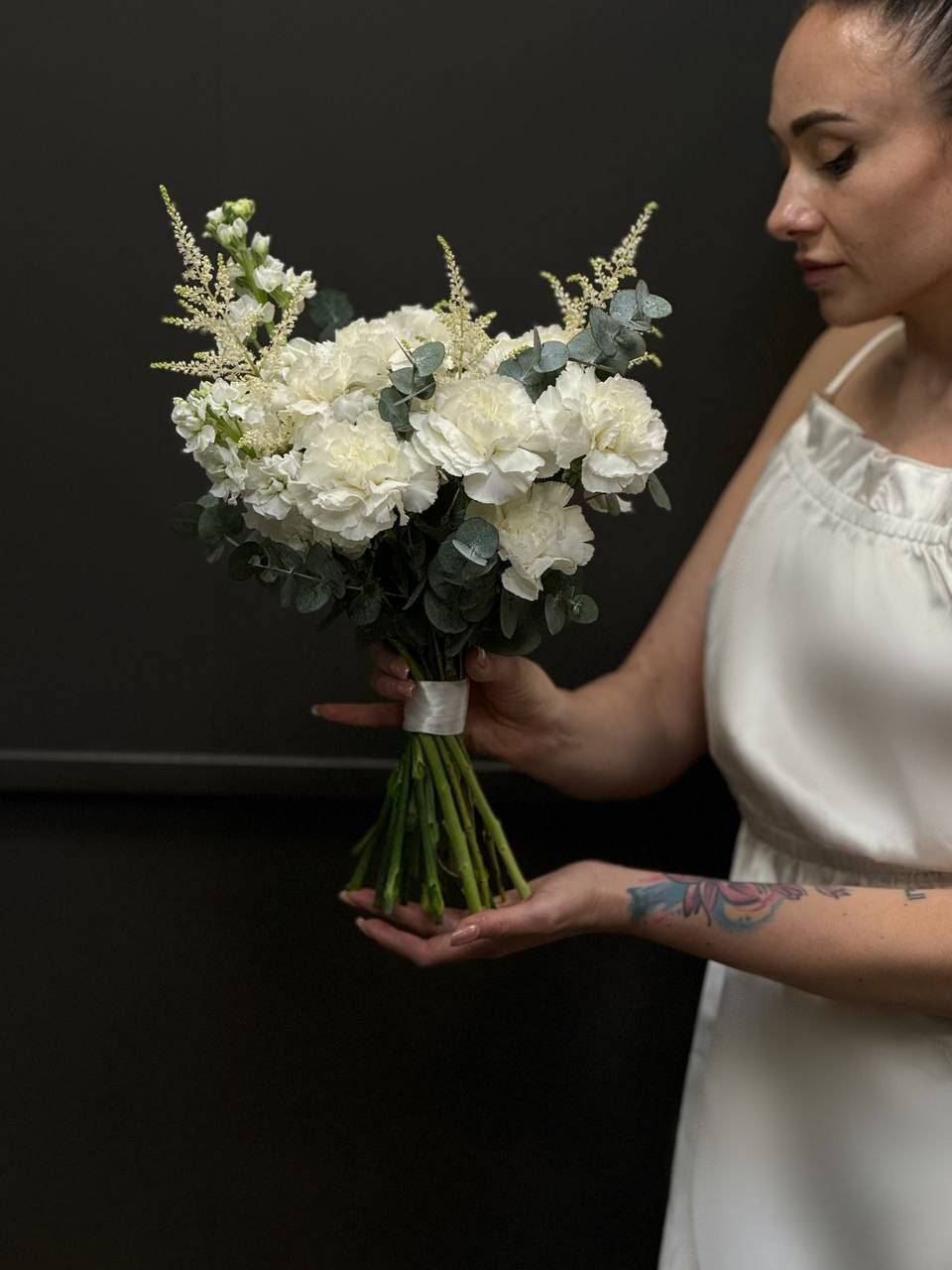 Подходит: Этот букет подойдёт невесте с тонкой душевной организацией, которая ценит детали и умеет видеть красоту в простом. Он для девушки, которая не стремится к громким жестам, но умеет говорить глубоко и искренне. Для той, кто хочет, чтобы её образ был не просто красивым, а наполненным смыслом и атмосферой.